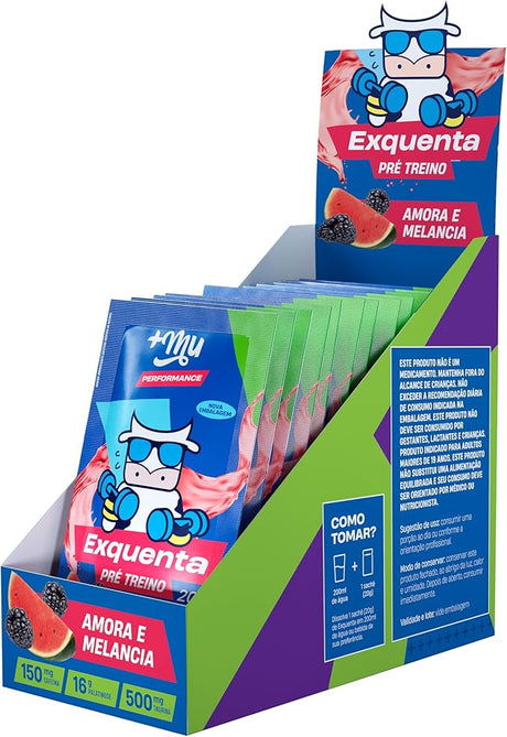 - EsgotadoMAISMU PRÉ TREINO EXQUENTA - SACHE 20G CX C/ 15 - MAIS MU Preço normal R$ 11590Preço unitário /Indisponível