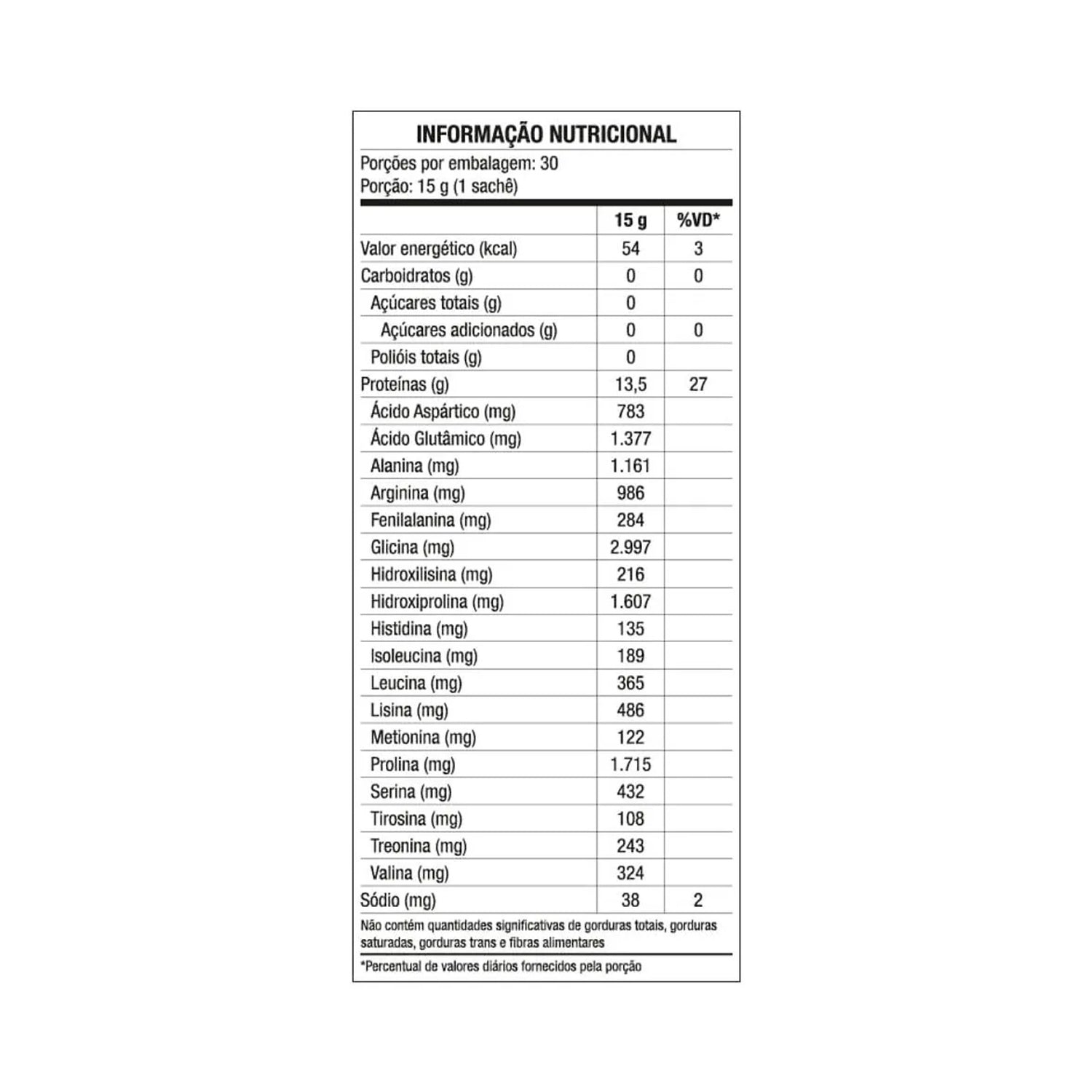 Modo de Usar: Consumir de 15 g (1 sachê) a 30 g (2 sachês) ao dia, antes e/ou depois do treino ou conforme orientação do médico e/ou nutricionista. 15 g rendem 30 porções. 30 g rendem 15 porções. USO ADULTO.