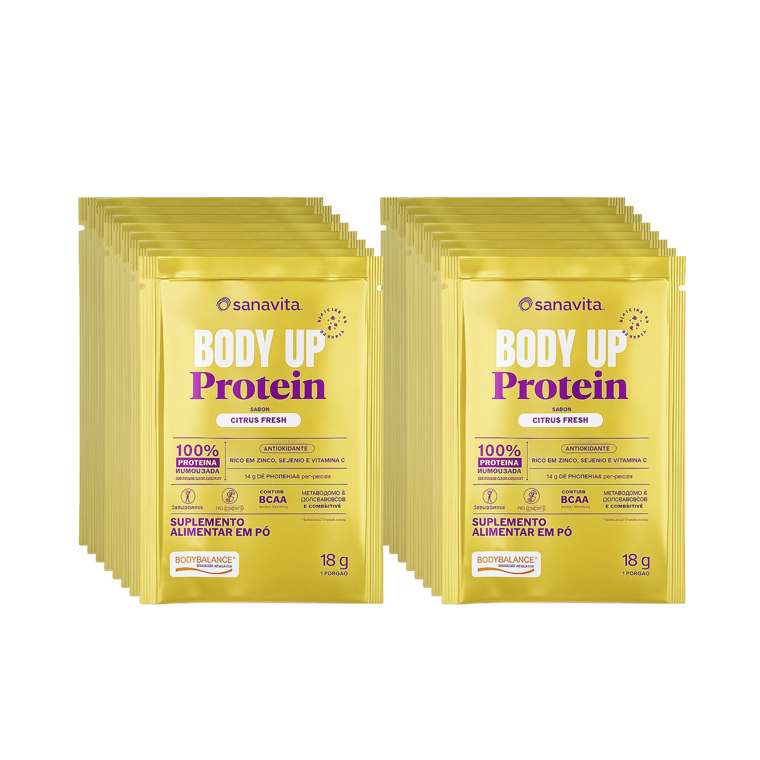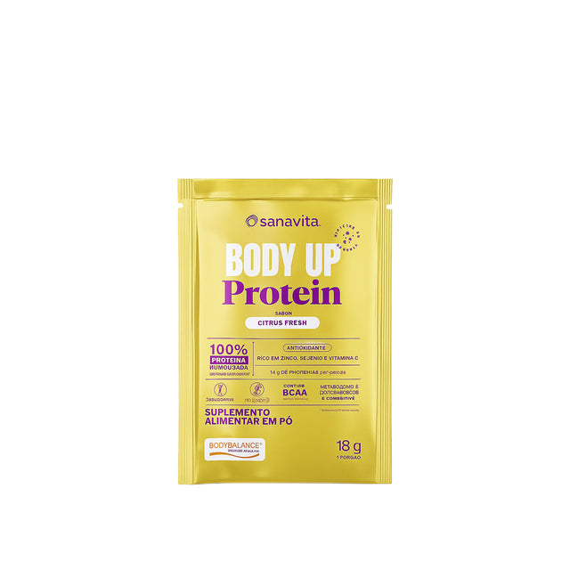 Body UP Protein é um suplemento proteico formulado com a exclusiva proteína hidrolisada de colágeno Bodybalance®, que possui estudos para melhora da composição corporal, e oferece uma digestão rápida e eficiente.